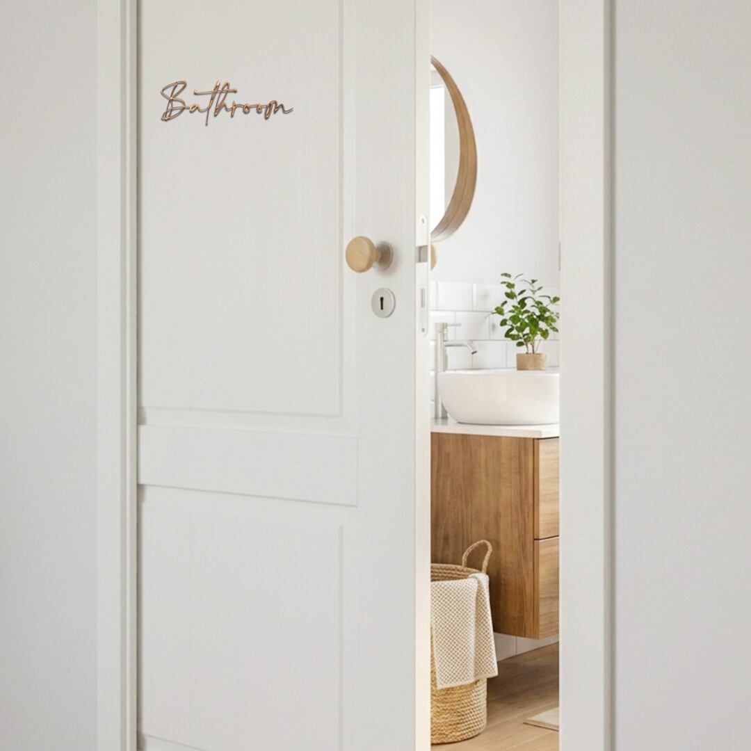 木製バスルームサイン Nordic Script / Bathroom